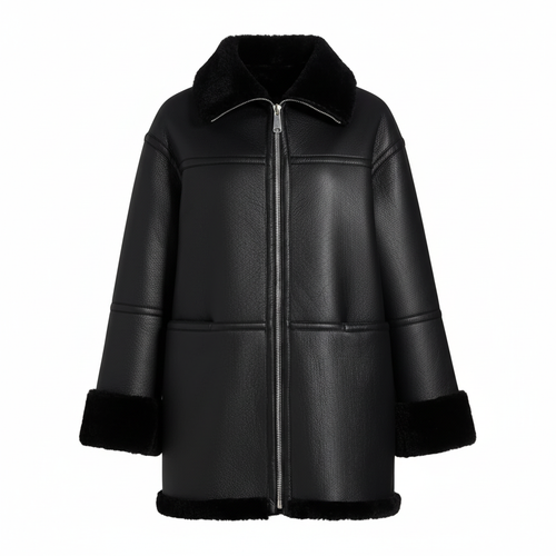 Core Wardrobe Faux Shearling-Lined Black Zip-Up Jacket